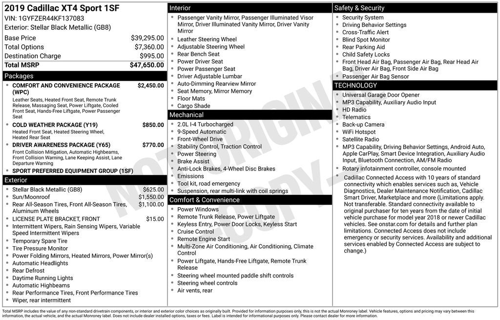 4.2 Diagonal Color Display Driver Info Center, 6-Way Power Passenger Seat Adjuster, 7-Speaker Audio System w/Auxiliary Amplifier, 8-Way Power Passenger Seat Adjuster, Auto-Dimming Inside Rear-View Mirror, Body-Color Heated Power-Adjustable Outside Mirrors, Cold Weather Package, Comfort & Convenience Package, Driver Awareness Package, Driver Seat Massage Control, Dual Panel Glass Sunroof w/Power Tilt/Sliding, Electronic Cruise Control w/Set & Resume Speed, Following Distance Indicator, Forward Collision Alert, Front & Rear Park Assist, Front Passenger Seat Massage Control, Front Pedestrian Braking, Hands-Free Liftgate, HD Rear Vision Camera, Heated Automatic Steering Wheel, Heated Driver & Front Passenger Seats, Heated Rear Outboard Seating Positions, IntelliBeam Automatic High Beam Control, Lane Keep Assist w/Lane Departure Warning, Low Speed Forward Automatic Braking, Manual Rake & Telescopic Steering Column, Power Rear Liftgate, Preferred Equipment Group 1SF, Radio: Cadillac User Experience AM/FM Stereo, SiriusXM Radio, Ventilated Driver & Front Passenger Seats, 20 Twin 5-Spoke Alloy Wheels, 3.47 Axle Ratio, 4-Way Driver Seat Power Lumbar Control, 4-Way Passenger Seat Power Lumbar Control, 4-Wheel Disc Brakes, 7 Speakers, 8-Way Power Driver Seat Adjuster, ABS brakes, Air Conditioning, Alloy wheels, AM/FM radio: SiriusXM, Apple CarPlay/Android Auto, Auto-dimming door mirrors, Auto-dimming Rear-View mirror, Automatic temperature control, Brake assist, Bumpers: body-color, Compass, Delay-off headlights, Driver door bin, Driver vanity mirror, Dual front impact airbags, Dual front side impact airbags, Electronic Stability Control, Emergency communication system: OnStar and Cadillac connected services capable, Exterior Parking Camera Rear, Four wheel independent suspension, Front anti-roll bar, Front Bucket Seats, Front Center Armrest, Front dual zone A/C, Front License Plate Bracket, Front reading lights, Fully automatic headlights, Garage door transmitter, Heated door mirrors, Illuminated entry, Knee airbag, Leather Shift Knob, Leather steering wheel, Leatherette Seating Surfaces, Low tire pressure warning, Memory seat, Occupant sensing airbag, Outside temperature display, Overhead airbag, Overhead console, Panic alarm, Passenger door bin, Passenger vanity mirror, Power door mirrors, Power driver seat, Power Liftgate, Power passenger seat, Power steering, Power windows, Radio data system, Rain sensing wipers, Rear anti-roll bar, Rear reading lights, Rear seat center armrest, Rear window defroster, Rear window wiper, Remote keyless entry, Roof rack: rails only, Security system, Speed control, Speed-sensing steering, Split folding rear seat, Spoiler, Sport steering wheel, Standard Suspension, Steering wheel mounted audio controls, Tachometer, Telescoping steering wheel, Tilt steering wheel, Traction control, Trip computer, Variably intermittent wipers, Voltmeter, Wheels: 18 10-Spoke Diamond Cut/Argent Met Alloy, 4.2 Diagonal Color Display Driver Info Center, 6-Way Power Passenger Seat Adjuster, 7-Speaker Audio System w/Auxiliary Amplifier, 8-Way Power Passenger Seat Adjuster, Auto-Dimming Inside Rear-View Mirror, Body-Color Heated Power-Adjustable Outside Mirrors, Cold Weather Package, Comfort & Convenience Package, Driver Awareness Package, Driver Seat Massage Control, Dual Panel Glass Sunroof w/Power Tilt/Sliding, Electronic Cruise Control w/Set & Resume Speed, Following Distance Indicator, Forward Collision Alert, Front & Rear Park Assist, Front Passenger Seat Massage Control, Front Pedestrian Braking, Hands-Free Liftgate, HD Rear Vision Camera, Heated Automatic Steering Wheel, Heated Driver & Front Passenger Seats, Heated Rear Outboard Seating Positions, IntelliBeam Automatic High Beam Control, Lane Keep Assist w/Lane Departure Warning, Low Speed Forward Automatic Braking, Manual Rake & Telescopic S