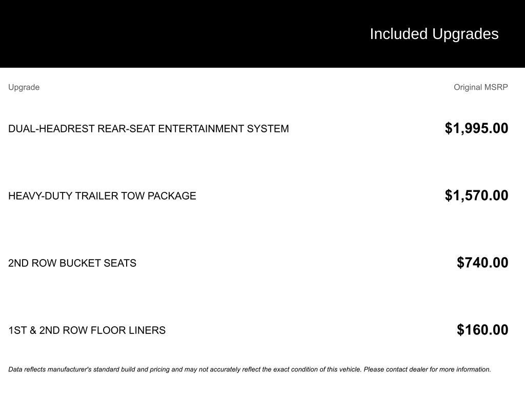Electronic Limited Slip w/3.73 Axle Ratio, Equipment Group 600A, Exterior Parking Camera Rear, Heated front seats, Heavy-Duty Engine Radiator, Heavy-Duty Trailer Tow Package, Integrated Trailer Brake Controller, Memory seat, Navigation System, Pedal memory, Power driver seat, Power Liftgate, Power moonroof, Pro Trailer Backup Assist, Radio: B&O Sound System by Bang & Olufsen, SiriusXM Satellite Radio, SYNC 3 Communications & Entertainment System, Ventilated front seats, 12 Speakers, 1st & 2nd Row Floor Liners, 22 Polished Aluminum Wheels, 2nd Row Bucket Seats, 3rd row seats: split-bench, 4-Wheel Disc Brakes, ABS brakes, Adaptive suspension, Adjustable pedals, Air Conditioning, Alloy wheels, AM/FM radio: SiriusXM, AppLink/Apple CarPlay and Android Auto, Auto High-beam Headlights, Auto-dimming door mirrors, Auto-dimming Rear-View mirror, Automatic temperature control, Brake assist, Bumpers: body-color, Compass, Delay-off headlights, Driver door bin, Driver vanity mirror, Dual front impact airbags, Dual front side impact airbags, Dual-Headrest Rear-Seat Entertainment System, Electronic Stability Control, Emergency communication system: SYNC 3 911 Assist, Four wheel independent suspension, Front anti-roll bar, Front Bucket Seats, Front Center Armrest, Front dual zone A/C, Front fog lights, Front reading lights, Fully automatic headlights, Garage door transmitter, Genuine wood console insert, Genuine wood dashboard insert, Genuine wood door panel insert, Heated & Cooled Perforated Leather Fr Bucket Seats, Heated door mirrors, Heated rear seats, Heated steering wheel, Illuminated entry, Lane Departure Warning System, Leather steering wheel, Low tire pressure warning, Occupant sensing airbag, Outside temperature display, Overhead airbag, Overhead console, Panic alarm, Passenger door bin, Passenger vanity mirror, Power door mirrors, Power passenger seat, Power steering, Power windows, Radio data system, Rain sensing wipers, Rear air conditioning, Rear anti-roll bar, Rear audio controls, Rear reading lights, Rear window defroster, Rear window wiper, Reclining 3rd row seat, Remote keyless entry, Roof rack, Security system, Speed control, Speed-sensing steering, Speed-Sensitive Wipers, Split folding rear seat, Steering wheel memory, Steering wheel mounted audio controls, Tachometer, Telescoping steering wheel, Tilt steering wheel, Traction control, Trip computer, Turn signal indicator mirrors, Variably intermittent wipers, Voltmeter, Electronic Limited Slip w/3.73 Axle Ratio, Equipment Group 600A, Exterior Parking Camera Rear, Heated front seats, Heavy-Duty Engine Radiator, Heavy-Duty Trailer Tow Package, Integrated Trailer Brake Controller, Memory seat, Navigation System, Pedal memory, Power driver seat, Power Liftgate, Power moonroof, Pro Trailer Backup Assist, Radio: B&O Sound System by Bang & Olufsen, SiriusXM Satellite Radio, SYNC 3 Communications & Entertainment System, Ventilated front seats.