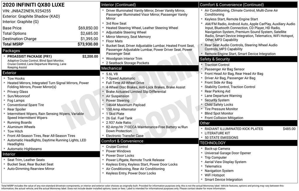 - Vehicle Name: INFINITI QX80