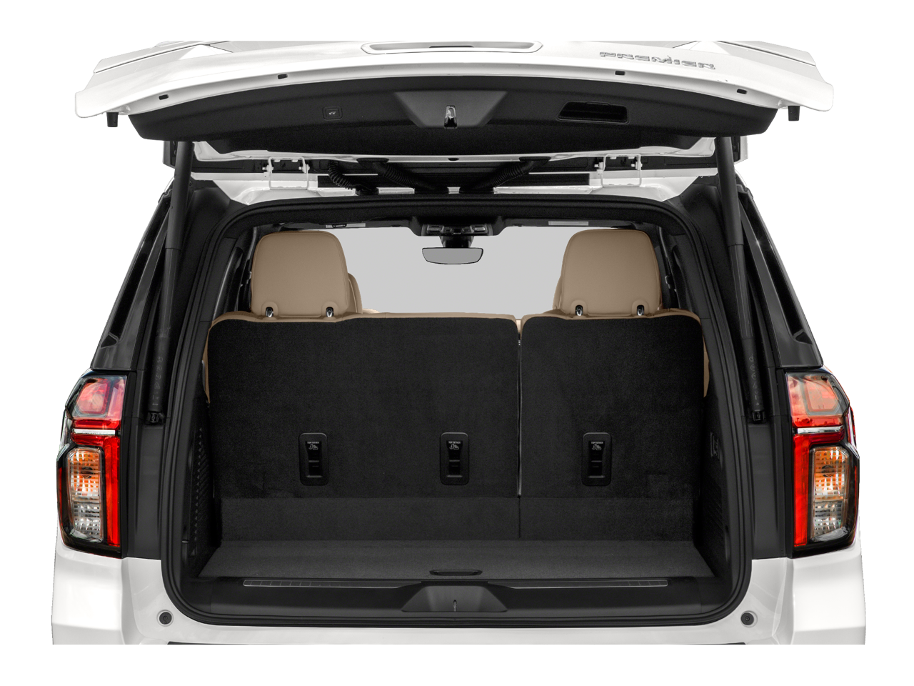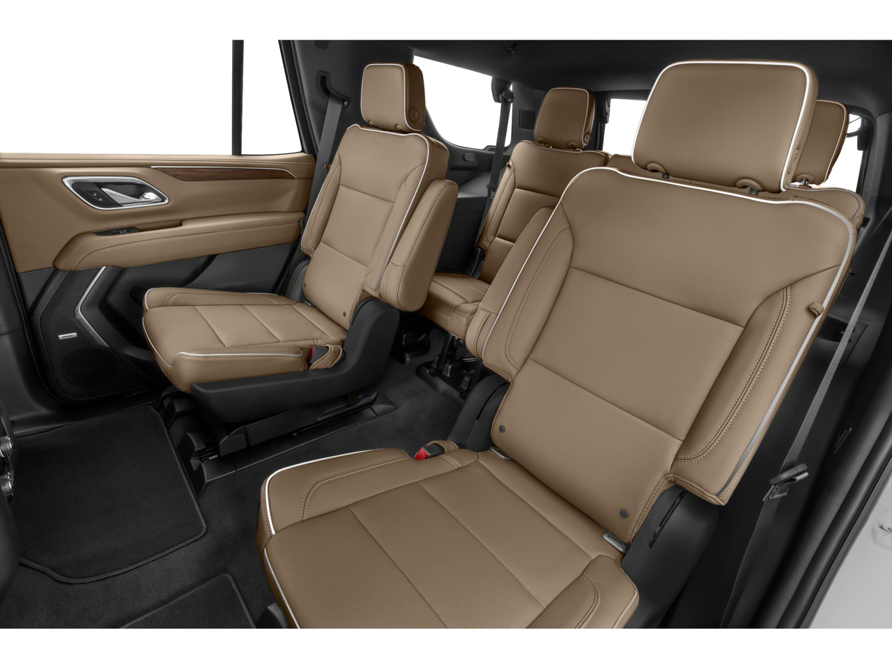 Preferred Equipment Group 1LZ: Bright Front and Rear Door Sill Plates; Memory Settings; Stop/start System Disable Button; Perforated Leather Seat Trim; Remote Start; 3rd Row 60/40 Power-Folding Split-Bench Seat; Safety Alert Seat; Chrome Door Handles with Body-Color Strip; Hill Descent Control; Heated Steering Wheel; LED Daytime Running Lamps; Rear Cross Traffic Alert; Driver and Front Outboard Passenger Airbags; Wireless Charging; Front High-Back Reclining Bucket Seats; Universal Home Remote; Color-Keyed Carpeting Floor Covering; Heated 2nd Row Outboard Seats; Hands-Free Rear Power Programmable Liftgate; Chevrolet Infotainment 3 Premium System Radio; 2-Speed Active Electronic Autotrac Transfer Case; 1st and 2nd Row Color-Keyed Carpeted Floor Mats; Enhanced Driver Information Center; Floor Console; Lane Change Alert with Side Blind Zone Alert; Chrome Mirror Caps; Dual Exhaust System; SiriusXM Radio with 360L; Power Tilt and Telescopic Steering Column; Leather-Wrapped Steering Wheel; Bose 10-Speaker Centerpoint Surround Audio System Feature; Magnetic Ride Control Suspension; Infotainment Display; Auto-Dimming Inside Rearview Mirror; Automatic Stop/start; Power
