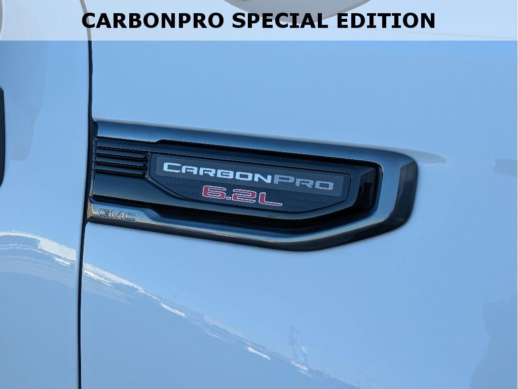AT4 CarbonPro Edition: CarbonPro Hard Badge; MulitPro Audio System by Kicker; Carbon Fiber Composite Bed. AT4 Preferred Package: Power Sliding Rear Window with Rear Defogger; Universal Home Remote; Adaptive Cruise Control. AT4 Premium Package: Off-Road High Clearance Step. Technology Package: Multicolor 15" Diagonal Head-Up Display; Bed View Camera; Rear Camera Mirror. Sierra Safety Plus Package: Rear Cross Traffic Braking; HD Surround Vision; Trailer Side Blind Zone Alert; Rear Pedestrian Detection; Ultrasonic Front and Rear Park Assist; Trailer Camera Provisions. Preferred Equipment Group 4SB: Electric Rear-Window Defogger; Theft Deterrent System (unauthorized Entry); Black Chrome Header and Grille Insert Bars; Front Rainsensing Wipers; Heavy-Duty Air Filter; Skid Plates; Compass; Heated Steering Wheel; 120-Volt Instrument Panel Power Outlet; Heated Driver and Front Outboard Passenger Seating; Wireless Charging; Front Premium Floor Liners with Removable Carpet Insert; Color-Keyed Carpeting Floor Covering; OnStar and GMC Connected Services Capable; Heated 2nd Row Outboard Seats; Power Front Passenger Windows with Express Up/down; Premium Bose 7-Speaker Sound System; Power Rear Windows with Express Down; Integrated Trailer Brake Controller; Ventilated Driver and Front Passenger Seats; Power Rake and Telescoping Steering Column; 18" X 8.5" Machined Aluminum Wheel