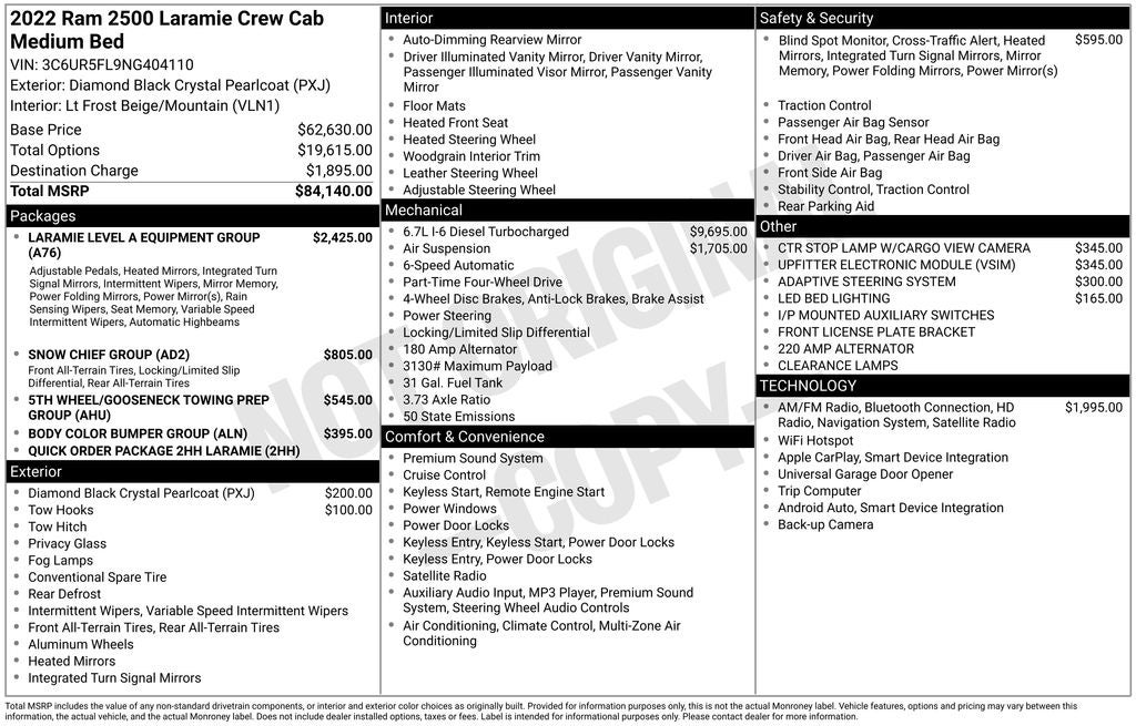 Certified Pre-Owned Go Certified, 12 Touchscreen Display, 220 Amp Alternator, 2nd Row In Floor Storage Bins, 4G LTE Wi-Fi Hot Spot, Air Suspension Decal, Alexa Built-In, All R1 High Radios, All Radio Equipped Vehicles, Anti-Spin Differential Rear Axle, Apple CarPlay, Auto High Beam Headlamp Control, Auto Level Rear Air Suspension, Blind Spot & Cross Path Detection, Body Color Bumper Group, Chrome Exterior Mirrors, Clearance Lamps, Connected Travel & Traffic Services, Connectivity - US/Canada, Dash Pass Thru Wire Circuits, Disassociated Touchscreen Display, Exterior Mirrors Courtesy Lamps, Exterior Mirrors w/Heating Element, Exterior Mirrors w/Memory, Exterior Mirrors w/Supplemental Signals, Foam Bottle Insert (Door Trim Panel), For Details, Visit DriveUconnect.com, For More Info, Call 800-643-2112, Front dual zone A/C, Global Telematics Box Module (TBM), Google Android Auto, GPS Antenna Input, GPS Navigation, HD Radio, I/P Mounted Auxiliary Switches, Integrated Voice Command w/Bluetooth®, Laramie Level A Equipment Group, Mirror Running Lights, Mirror-Mounted Aux Reverse Lamps, Off-Road Information Pages, Painted Front Bumper, Painted Rear Bumper, Power Adjustable Convex Aux Mirrors, Power Adjustable Pedals w/Memory, Power Chrome Tow Mirrors w/Convex Spotter & Memory, Power Folding Mirrors, Quick Order Package 2HH Laramie, Radio data system, Radio: Uconnect 5 Nav w/12.0 Display, Radio/Driver Seat/Mirrors/Pedals Memory, Rain Sensitive Windshield Wipers, Remote Tailgate Release, Selectable Tire Fill Alert, SiriusXM Radio Service, SiriusXM w/360L, Snow Chief Group, Trailer Tow Mirrors, 10 Speakers, 115V Auxiliary Rear Power Outlet, 2 Way Rear Headrest Seat, 3.73 Axle Ratio, 4 Way Front Headrests, 4-Wheel Disc Brakes, 5th Wheel/Gooseneck Towing Prep Group, 8.4 Touchscreen Display, ABS brakes, Active Noise Control System, Adaptive Steering System, Adjustable pedals, Air Conditioning, Alloy wheels, AM/FM radio: SiriusXM, Apple CarPlay/Android Auto, Auto-dimming Rear-View mirror, Automatic temperature control, Bluetooth® Handsfree Phone & Audio, Brake assist, Bumpers: chrome, Compass, CTR Stop Lamp w/Cargo View Camera, Delay-off headlights, Driver door bin, Driver vanity mirror, Dual front impact airbags, Dual front side impact airbags, Electronic Stability Control, Electronically Controlled Throttle, Front anti-roll bar, Front Center Armrest w/Storage, Front fog lights, Front License Plate Bracket, Front reading lights, Front Seat Back Map Pockets, Fully automatic headlights, Garage door transmitter, Heated door mirrors, Heated Front Seats, Heated front seats, Heated Steering Wheel, Heated steering wheel, Illuminated entry, Integrated Center Stack Radio, Leather steering wheel, Leather Trim 40/20/40 Bench Seat, LED Bed Lighting, Low tire pressure warning, Occupant sensing airbag, Outside temperature display, Overhead airbag, Overhead console, Panic alarm, ParkView Rear Back-Up Camera, Passenger door bin, Passenger vanity mirror, Power 2-Way Driver Lumbar Adjust, Power 2-Way Passenger Lumbar Adjust, Power Adjust 8-Way Driver Seat, Power Adjust 8-Way Front Passenger Seat, Power door mirrors, Power driver seat, Power passenger seat, Power steering, Power windows, Radio: Uconnect 5 W w/8.4 Display, Rear 60/40 Folding Seat, Rear anti-roll bar, Rear reading lights, Rear seat center armrest, Rear step bumper,