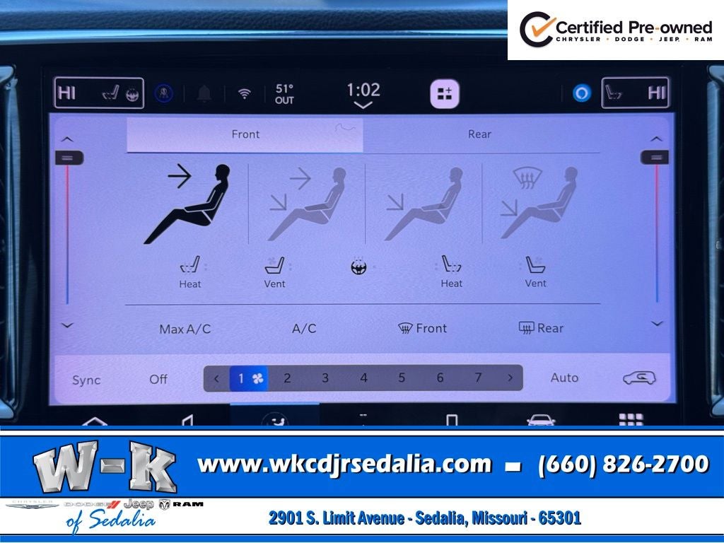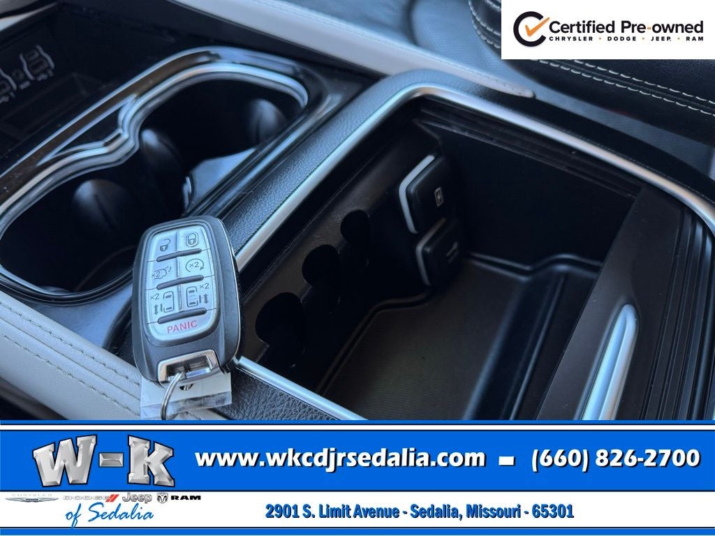 CPO Gold Warranty Certified, Navigation System, Quick Order Package 27P, 13 Speakers, 3.25 Axle Ratio, 3rd row seats: split-bench, 4-Wheel Disc Brakes, ABS brakes, Air Conditioning, Alloy wheels, AM/FM radio: SiriusXM 360L, Apple CarPlay/Android Auto, Audio memory, Auto-dimming Rear-View mirror, Automatic temperature control, Black Seats, Bodyside moldings, Brake assist, Bumpers: body-color, Compass, Delay-off headlights, Driver door bin, Driver vanity mirror, Driver's Seat Mounted Armrest, Dual front impact airbags, Dual front side impact airbags, Electronic Stability Control, Emergency communication system: SiriusXM Guardian, Four wheel independent suspension, Front anti-roll bar, Front Bucket Seats, Front dual zone A/C, Front fog lights, Front reading lights, Fully automatic headlights, Garage door transmitter, Heated door mirrors, Heated front seats, Heated rear seats, Heated steering wheel, Illuminated entry, Integrated Active Noise Cancellation, Knee airbag, Low tire pressure warning, Memory seat, Nappa Leather Bucket Seats, Occupant sensing airbag, Outside temperature display, Overhead airbag, Overhead console, Panic alarm, ParkView Rear Back-Up Camera, Passenger door bin, Passenger seat mounted armrest, Passenger vanity mirror, Power door mirrors, Power driver seat, Power Folding 3rd Row Seat, Power Liftgate, Power moonroof, Power passenger seat, Power steering, Power windows, Radio data system, Radio: Uconnect 5 Nav w/10.1 Display, Rain sensing wipers, Rear air conditioning, Rear reading lights, Rear window defroster, Rear window wiper, Reclining 3rd row seat, Remote keyless entry, Roof rack, Security system, Speed control, Split folding rear seat, Spoiler, Steering wheel mounted audio controls, Tachometer, Telescoping steering wheel, Tilt steering wheel, Touring Suspension, Traction control, Trip computer, Turn signal indicator mirrors, Variably intermittent wipers, Ventilated front seats, Voltmeter, Wheels: 18 x 7.5 Painted Aluminum Design 2, Navigation System, Quick Order Package 27P.