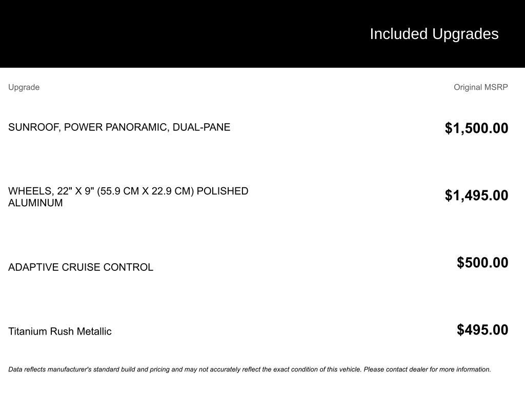The Manufacturer's Suggested Retail Price excludes tax, title, license, dealer fees and optional equipment. Dealer sets final price.