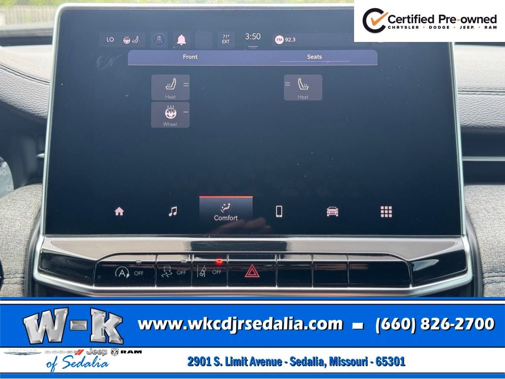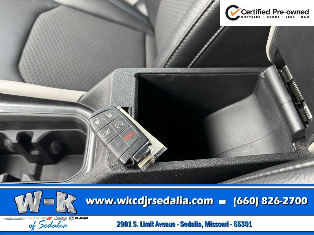 Certified Pre-Owned Gold Certified, 4WD, 2nd Row USB Type A/C Charge Only, Air Conditioning ATC w/Dual Zone Control, All-Season Floor Mats, Auto-Dimming Rear-View Mirror, Convenience Group, Foot Activated Open 'N Go Liftgate, Heated Front Seats, Heated Steering Wheel, Humidity Sensor, Power 2-Way Driver Lumbar Adjust, Power Adjust 8-Way Driver Seat, Power Liftgate, Quick Order Package 29J, Radio: Uconnect 5 w/10.1 Display, Remote Start System, Reversible Carpet/Vinyl Cargo Mat, Universal Garage Door Opener, Windshield Wiper De-Icer, 17 x 7.0 Aluminum Wheels, 3.73 Final Drive Ratio, 4-Wheel Disc Brakes, 6 Speakers, ABS brakes, Air Conditioning, Alloy wheels, AM/FM radio: SiriusXM, Auto High-beam Headlights, Brake assist, Bumpers: body-color, Compass, Delay-off headlights, Driver door bin, Driver vanity mirror, Dual front impact airbags, Dual front side impact airbags, Electronic Stability Control, Four wheel independent suspension, Front anti-roll bar, Front Bucket Seats, Front Center Armrest w/Storage, Front fog lights, Front License Plate Bracket, Front reading lights, Fully automatic headlights, Heated door mirrors, Illuminated entry, Knee airbag, Leather Shift Knob, Low tire pressure warning, Occupant sensing airbag, Outside temperature display, Overhead airbag, Overhead console, Panic alarm, ParkView Rear Back-Up Camera, Passenger door bin, Passenger vanity mirror, Power door mirrors, Power steering, Power windows, Premium Cloth/Vinyl Bucket Seats, Rear anti-roll bar, Rear seat center armrest, Rear window defroster, Rear window wiper, Remote keyless entry, Security system, Speed control, Split folding rear seat, Spoiler, Steering wheel mounted audio controls, Tachometer, Telescoping steering wheel, Tilt steering wheel, Traction control, Trip computer, Variably intermittent wipers, 4WD, 2nd Row USB Type A/C Charge Only, Air Conditioning ATC w/Dual Zone Control, All-Season Floor Mats, Auto-Dimming Rear-View Mirror, Convenience Group, Foot Activated Open 'N Go Liftgate, Heated Front Seats, Heated Steering Wheel, Humidity Sensor, Power 2-Way Driver Lumbar Adjust, Power Adjust 8-Way Driver Seat, Power Liftgate, Quick Order Package 29J, Radio: Uconnect 5 w/10.1 Display, Remote Start System, Reversible Carpet/Vinyl Cargo Mat, Universal Garage Door Opener, Windshield Wiper De-Icer.