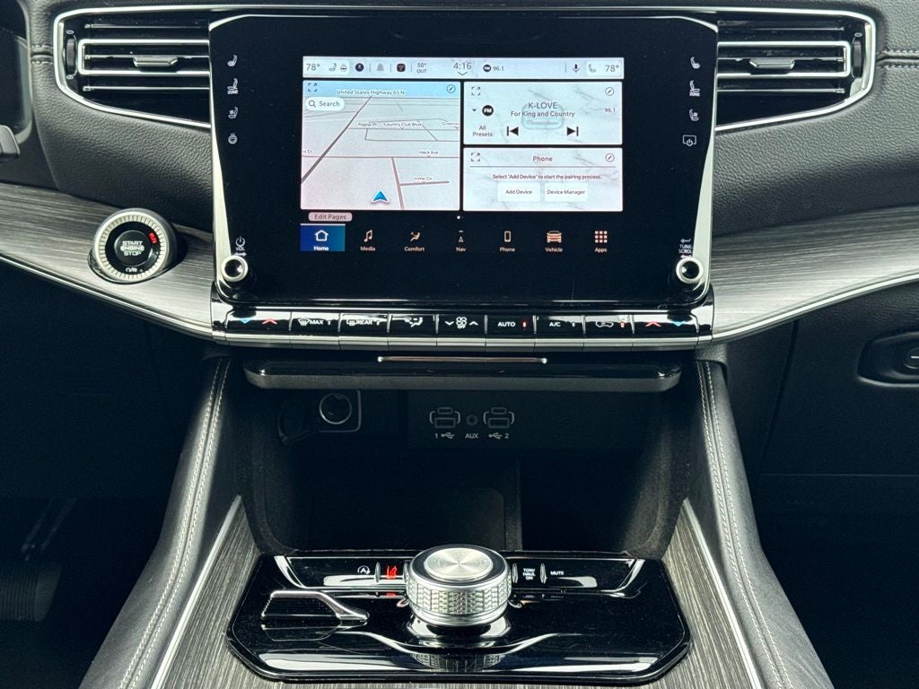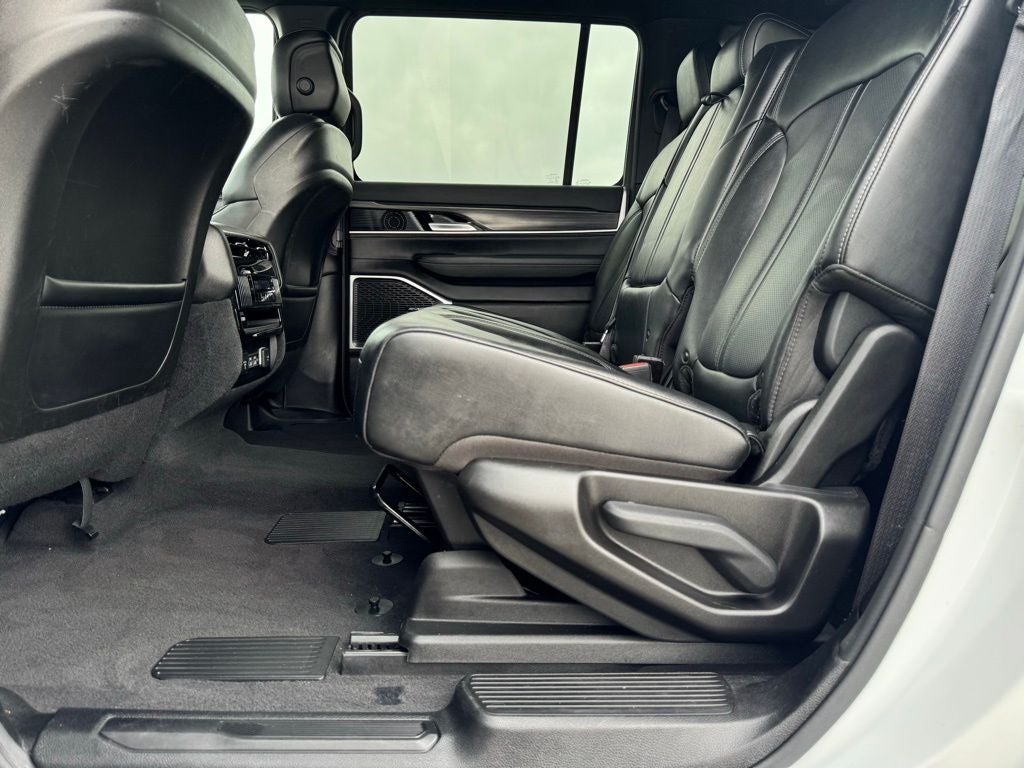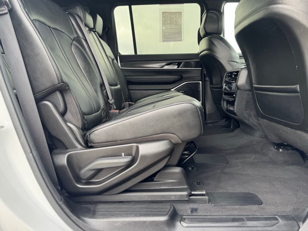 Certified Pre-Owned Gold Certified, Apple CarPlay/Android Auto, Exterior Parking Camera Rear, Front dual zone A/C, Heated steering wheel, Leather Trimmed Bucket Seats, Memory seat, Navigation System, Pedal memory, Power driver seat, Power Liftgate, Quick Order Package 25J, Radio data system, Radio: Uconnect 5 Nav w/10.1 Display, Rear air conditioning, Rear window defroster, 10 Speakers, 3.55 Rear Axle Ratio, 3rd row seats: bench, 4-Wheel Disc Brakes, 8-Passenger Seating, ABS brakes, Adjustable pedals, Air Conditioning, Alloy wheels, AM/FM radio: SiriusXM with 360L, Anti-whiplash front head restraints, Audio memory, Auto-dimming door mirrors, Auto-dimming Rear-View mirror, Auto-leveling suspension, Automatic temperature control, Brake assist, Bumpers: body-color, Compass, Delay-off headlights, Driver door bin, Driver vanity mirror, Driver's Seat Mounted Armrest, Dual front impact airbags, Dual front side impact airbags, Electronic Stability Control, Emergency communication system: Wagoneer Connect, Four wheel independent suspension, Front anti-roll bar, Front Bucket Seats, Front Center Armrest w/Storage, Front fog lights, Front reading lights, Full Length Floor Console, Fully automatic headlights, Garage door transmitter, Genuine wood console insert, Genuine wood dashboard insert, Genuine wood door panel insert, Heated door mirrors, Heated front seats, Illuminated entry, Knee airbag, Low tire pressure warning, Normal Duty Suspension, Occupant sensing airbag, Outside temperature display, Overhead airbag, Overhead console, Panic alarm, Passenger door bin, Passenger seat mounted armrest, Passenger vanity mirror, Power adjustable front head restraints, Power door mirrors, Power passenger seat, Power steering, Power windows, Rain sensing wipers, Rear anti-roll bar, Rear reading lights, Rear seat center armrest, Rear window wiper, Reclining 3rd row seat, Remote keyless entry, Security system, Speed control, Speed-sensing steering, Speed-Sensitive Wipers, Split folding rear seat, Steering wheel memory, Steering wheel mounted audio controls, Tachometer, Telescoping steering wheel, Tilt steering wheel, Traction control, Trip computer, Turn signal indicator mirrors, Variably intermittent wipers, Ventilated front seats, Voltmeter, Wheels: 20 x 9.0 Premium 2 Aluminum, Apple CarPlay/Android Auto, Exterior Parking Camera Rear, Front dual zone A/C, Heated steering wheel, Leather Trimmed Bucket Seats, Memory seat, Navigation System, Pedal memory, Power driver seat, Power Liftgate, Quick Order Package 25J, Radio data system, Radio: Uconnect 5 Nav w/10.1 Display, Rear air conditioning, Rear window defroster.
