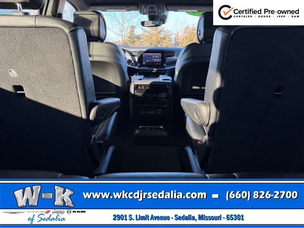 Certified Pre-Owned Gold Certified, AM/FM radio: SiriusXM with 360L, Apple CarPlay/Android Auto, Driver's Seat Mounted Armrest, Exterior Parking Camera Rear, Front dual zone A/C, Heated front seats, Heated rear seats, Heated steering wheel, Leather Trimmed Bucket Seats, Memory seat, Navigation System, Pedal memory, Power adjustable front head restraints, Power Liftgate, Power windows, Quick Order Package 25N, Radio: Uconnect 5 Nav w/10.1 Display, Rear anti-roll bar, Rear dual zone A/C, Steering wheel memory, Steering wheel mounted audio controls, 10 Speakers, 3.55 Rear Axle Ratio, 3rd row seats: bench, 4-Wheel Disc Brakes, ABS brakes, Adjustable pedals, Air Conditioning, Alloy wheels, Anti-whiplash front head restraints, Audio memory, Auto High-beam Headlights, Auto-dimming door mirrors, Auto-dimming Rear-View mirror, Auto-leveling suspension, Automatic temperature control, Brake assist, Bumpers: body-color, Compass, Delay-off headlights, Driver door bin, Driver vanity mirror, Dual front impact airbags, Dual front side impact airbags, Electronic Stability Control, Emergency communication system: Wagoneer Connect, Four wheel independent suspension, Front anti-roll bar, Front Bucket Seats, Front Center Armrest w/Storage, Front fog lights, Front reading lights, Fully automatic headlights, Garage door transmitter, Genuine wood console insert, Genuine wood dashboard insert, Genuine wood door panel insert, Heated door mirrors, Illuminated entry, Knee airbag, Low tire pressure warning, Normal Duty Suspension, Occupant sensing airbag, Outside temperature display, Overhead airbag, Overhead console, Panic alarm, Passenger door bin, Passenger seat mounted armrest, Passenger vanity mirror, Power door mirrors, Power driver seat, Power passenger seat, Power steering, Radio data system, Rain sensing wipers, Rear air conditioning, Rear reading lights, Rear seat center armrest, Rear window defroster, Rear window wiper, Reclining 3rd row seat, Remote keyless entry, Security system, Speed control, Speed-sensing steering, Speed-Sensitive Wipers, Split folding rear seat, Tachometer, Telescoping steering wheel, Tilt steering wheel, Traction control, Trip computer, Turn signal indicator mirrors, Variably intermittent wipers, Ventilated front seats, Voltmeter, Wheels: 20 x 9.0 Aluminum (DISC), AM/FM radio: SiriusXM with 360L, Apple CarPlay/Android Auto, Driver's Seat Mounted Armrest, Exterior Parking Camera Rear, Front dual zone A/C, Heated front seats, Heated rear seats, Heated steering wheel, Leather Trimmed Bucket Seats, Memory seat, Navigation System, Pedal memory, Power adjustable front head restraints, Power Liftgate, Power windows, Quick Order Package 25N, Radio: Uconnect 5 Nav w/10.1 Display, Rear anti-roll bar, Rear dual zone A/C, Steering wheel memory, Steering wheel mounted audio controls.