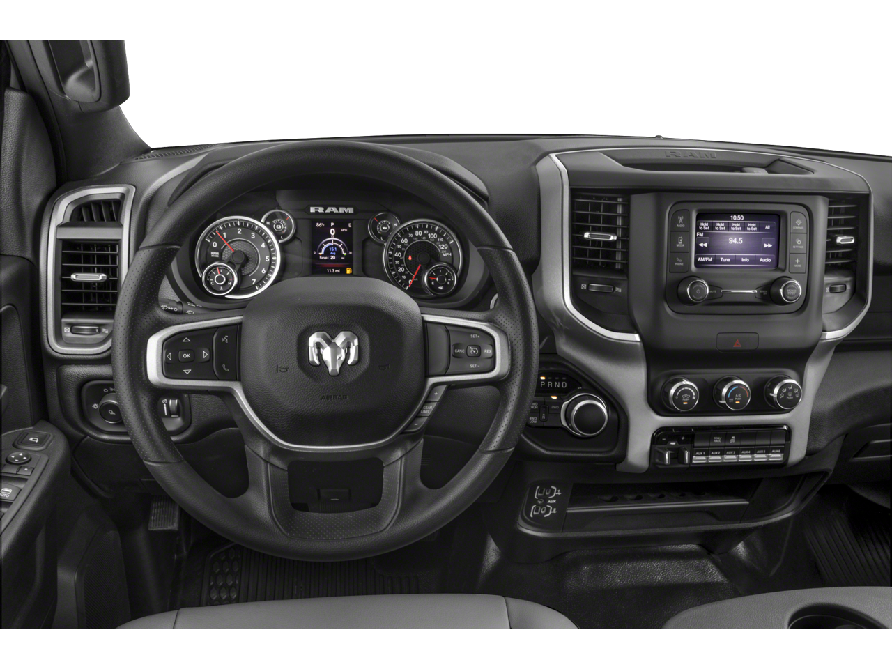 Bright Front Bumper, Bright Rear Bumper, Center Hub, Chrome Appearance Group, Chrome Grille Surround, Chrome Headlamp Bezels, Cold Weather Group, Engine Block Heater, Matte Black Mesh w/Chrome Grille, MOPAR Winter Front Grille Cover, Protection Group, Quick Order Package 2HA Tradesman, Tradesman Level 1 Equipment Group, Wheels: 18 x 8.0 Steel Chrome Clad, 2 Way Rear Headrest Seat, 3.73 Axle Ratio, 4 Way Front Headrests, 4-Wheel Disc Brakes, 40/20/40 Split Bench Seat, 6 Speakers, ABS brakes, Active Noise Control System, Air Conditioning, AM/FM radio, Black Exterior Mirrors, Brake assist, Chrome Flat Cab-Length Side Steps, Compass, Delay-off headlights, Driver door bin, Dual front impact airbags, Dual front side impact airbags, Electronic Stability Control, Electronically Controlled Throttle, Emergency communication system: SiriusXM Guardian, For Details Visit DriveUconnect.com, Front anti-roll bar, Front Armrest w/Cupholders, Front Center Armrest w/Storage, Front License Plate Bracket, Front reading lights, Fully automatic headlights, Global Telematics Box Module (TBM), GPS Antenna Input, HD Vinyl 40/20/40 Split Bench Seat, Illuminated entry, Integrated Voice Command w/Bluetooth®, Low tire pressure warning, Manual Adjust 4-Way Driver Seat, Manual Adjust 4-Way Front Passenger Seat, Manual Folding Exterior Mirrors, Manual Telescoping Mirrors, Manufacturer's Statement of Origin, Occupant sensing airbag, Outside temperature display, Overhead airbag, Overhead console, Panic alarm, ParkView Rear Back-Up Camera, Passenger door bin, Passenger vanity mirror, Power steering, Power windows, Radio data system, Radio: Uconnect 3 w/5 Display, Rear Folding Seat, Rear step bumper, Remote keyless entry, Remote USB Port - Charge Only, Speed control, Storage Tray, Tachometer, Tilt steering wheel, Tip Start, Traction control, Variably intermittent wipers, Voltmeter, Wheels: 18 x 8.0 Steel, Bright Front Bumper, Bright Rear Bumper, Center Hub, Chrome Appearance Group, Chrome Grille Surround, Chrome Headlamp Bezels, Cold Weather Group, Engine Block Heater, Matte Black Mesh w/Chrome Grille, MOPAR Winter Front Grille Cover, Protection Group, Quick Order Package 2HA Tradesman, Tradesman Level 1 Equipment Group, Wheels: 18 x 8.0 Steel Chrome Clad.