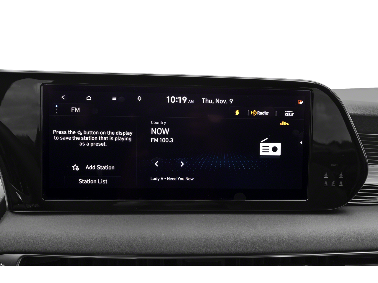 - Radio: AM/FM/MP3 Premium Audio System -inc: 630-Watts, Harman Kardon audio system w/12-speakers, Quantum Logic Surround, Clari-Fi music restoration technology, 12.3" color touchscreen display, onboard navigation w/traffic flow including incident data via HD Radio (HERE), Over-the-Air (OTA) map updates, SiriusXM, Android Auto and Apple CarPlay, rear seat quiet mode, passenger talk (in-car intercom), Wifi hotspot, Bluetooth® hands-free connectivity w/multiple device connection and wireless audio streaming, USB, dynamic voice recognition and Bluelink Connected Car System