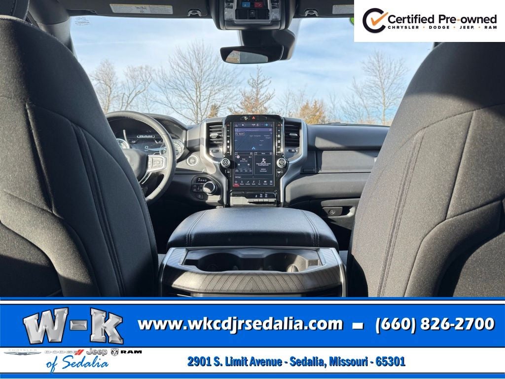 Certified Pre-Owned Gold Certified, 115V Auxiliary Power Outlet, 115V Auxiliary Rear Power Outlet, 12 Touchscreen Display, 2nd Row In Floor Storage Bins, 400W Inverter, 4G LTE Wi-Fi Hot Spot, 9 Amplified Speakers w/Subwoofer, ATC w/Dual Zone Control, Apple CarPlay, Auto Power-Folding Mirrors, Auto-Dimming Exterior Driver Mirror, Big Horn Level 2 Equipment Group, Black Exterior Mirrors, Black Premium Power Mirrors, Cluster 7.0 TFT Color Display, Configurable Drive Mode,Exterior Mirrors w/Heating Element, Exterior Mirrors w/Supplemental Signals, Glove Box Lamp, Google Android Auto, GPS Antenna Input, GPS Navigation, HD Radio, Heated Front Seats, Heated Steering Wheel, Integrated Voice Command w/Bluetooth®, Leather Wrapped Steering Wheel, LED Dome Lamp w/On/Off Switch, LED Footwell Lighting, Media Hub w/2 Charge Only USBs, Overhead LED Lamps, Power 2-Way Driver Lumbar Adjust, Power Adjust 8-Way Driver Seat, Power Adjustable Pedals, Premium Overhead Console, Quick Order Package 21Z Big Horn, Radio: Uconnect 5 Nav w/12.0 Display, Rear Power Sliding Window, Rear Window Defroster, Remote Tailgate Release, Security Alarm, SiriusXM w/360L, Steering Wheel Mounted Audio Controls, Sun Visors w/Illuminated Vanity Mirrors, Universal Garage Door Opener, USB Host Flip, 3 Rear Seat Head Restraints, 4 Way Front Headrests, 4-Wheel Disc Brakes, 6 Speakers, ABS brakes, Air Conditioning, Alloy wheels, AM/FM radio, Apple CarPlay/Android Auto, Auto High-beam Headlights, Brake assist, Bumpers: chrome, Cloth Bench Seat, Compass, Delay-off headlights, Driver door bin, Dual front impact airbags, Dual front side impact airbags, Electronic Stability Control, Front anti-roll bar, Front Center Armrest w/Storage, Front fog lights, Front License Plate Bracket, Front reading lights, Front Seat Back Map Pockets, Front wheel independent suspension, Fully automatic headlights, Heated door mirrors, Illuminated entry, Low tire pressure warning, Manual Adjust 4-Way Front Passenger Seat, Manual Folding Exterior Mirrors, Manufacture