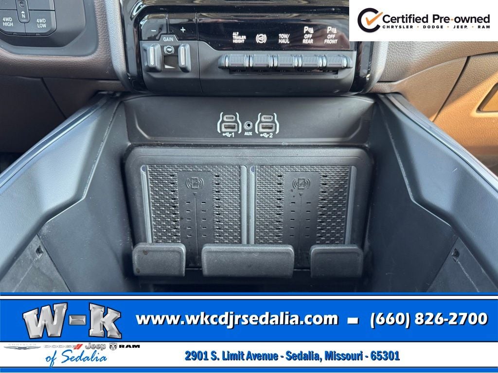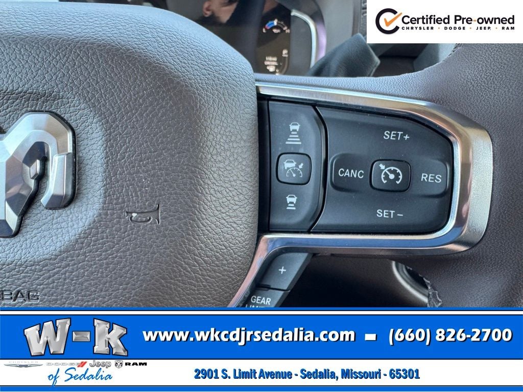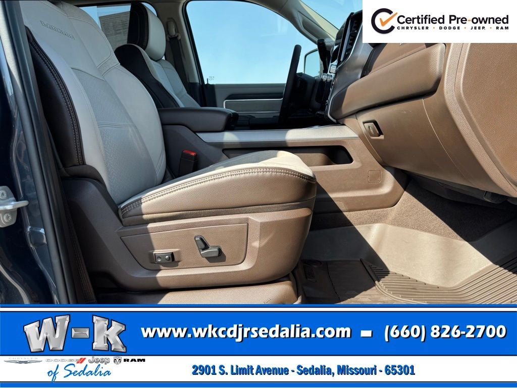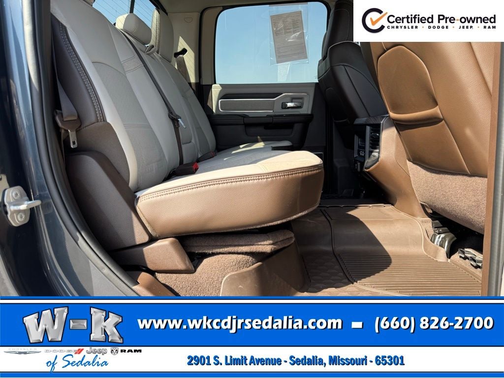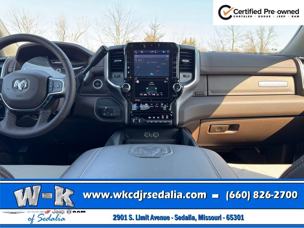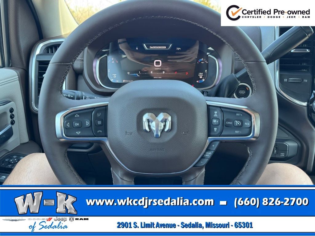 Certified Pre-Owned Gold Certified, #1 Seat Foam Cushion, 115V Auxiliary Rear Power Outlet, 2 Way Rear Headrest Seat, 2nd Row In Floor Storage Bins, 4 Way Front Headrests, Active Lane Management System, Adaptive Steering System, Auto Adjust In Reverse Exterior Mirrors, Auto Dimming Exterior Passenger Mirror, Auto High Beam Headlamp Control, Auto Power-Folding Mirrors, Auto-Dimming Exterior Mirrors, Bucket Seats, Chrome Exterior Mirrors, CTR Stop Lamp w/Cargo View Camera, Drowsy Driver Detection, Dual Wireless Charging Pad, Exterior Mirrors Courtesy Lamps, Exterior Mirrors w/Heating Element, Exterior Mirrors w/Memory, Exterior Mirrors w/Supplemental Signals, Foam Bottle Insert (Door Trim Panel), Folding Flat Load Floor Storage, Forward & Reverse Utility Lights, Front Seat Back Map Pockets, Full Length Upgraded Floor Console, GPS Navigation, Heated Front Seats, Heated Steering Wheel, High Back Seats, Laramie Level 1 Plus Equipment Group, Leather Trimmed Bucket Seats, LED Bed Lighting, Mirror Running Lights, MOPAR Deployable Bed Step, MOPAR Spray In Bedliner, Navigation System, ParkView Rear Back-Up Camera, Power 2-Way Driver Lumbar Adjust, Power 2-Way Passenger Lumbar Adjust, Power Adjust 8-Way Driver Seat, Power Adjust 8-Way Front Passenger Seat, Power Adjust Mirrors, Power Adjustable Pedals w/Memory, Power Heat Fold Memory Telescopic Mirrors, Power Sunroof, Power Telescoping Mirrors, Power-Adjustable Convex Aux Mirrors, Quick Order Package 24H Laramie, Radio: Uconnect 5 Nav w/12.0 Display, Rain Sensitive Windshield Wipers, Rear 60/40 Folding Seat, Rear window defroster, Remote Tailgate Release, Surround View Camera System, Towing Technology Group, Traffic Sign Recognition, Trailer Reverse Guidance, Trailer Tire Pressure Monitoring System, 10 Speakers, 4-Wheel Disc Brakes, 4G LTE Wi-Fi Hot Spot, 5th Wheel/Gooseneck Towing Prep Group, ABS brakes, Air Conditioning, Alexa Built-In, Alloy wheels, AM/FM radio: SiriusXM with 360L, Apple CarPlay, Apple CarPlay/Android Auto, Auto Level Rear Air Suspension, Auto-dimming Rear-View mirror, Automatic temperature control, Black Wheel Center Hub, Brake assist, Bumpers: body-color, Chrome Flat Wheel-to-Wheel Side Steps, Compass, Connected Travel & Traffic Services, Connectivity - US/Canada, Delay-off headlights, Delete Deployable Bed Step, Disassociated Touchscreen Display, Driver door bin, Driver vanity mirror, Dual front impact airbags, Dual front side impact airbags, Electronic Stability Control, Emergency Vehicle Alert System (EVAS), Front anti-roll bar, Front Center Armrest w/Storage, Front dual zone A/C, Front fog lights, Front License Plate Bracket, Front reading lights, Fully automatic headlights, Garage door transmitter, Global Telematics Box Module (TBM), Google Android Auto,
