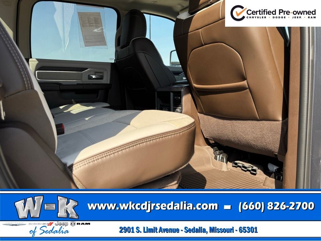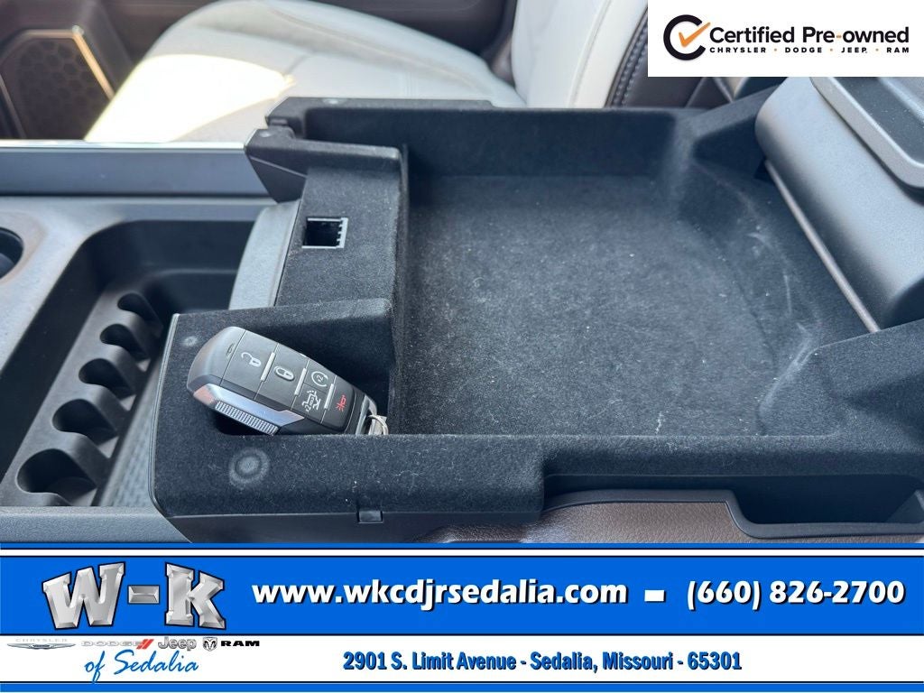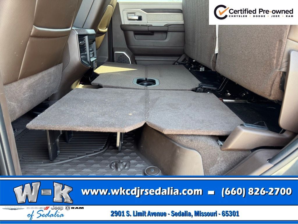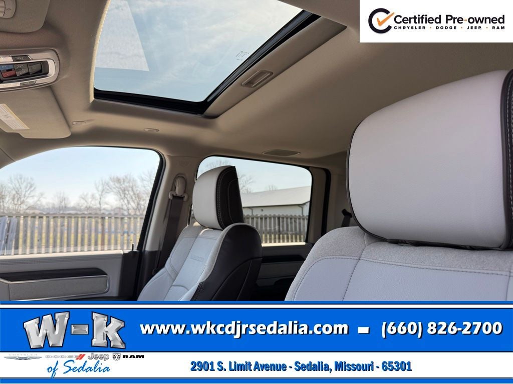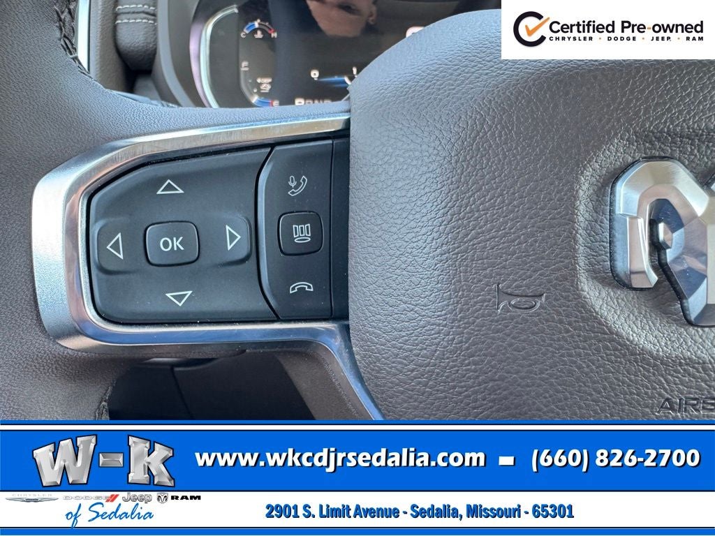 Certified Pre-Owned Gold Certified, #1 Seat Foam Cushion, 115V Auxiliary Rear Power Outlet, 2 Way Rear Headrest Seat, 2nd Row In Floor Storage Bins, 4 Way Front Headrests, Active Lane Management System, Adaptive Steering System, Auto Adjust In Reverse Exterior Mirrors, Auto Dimming Exterior Passenger Mirror, Auto High Beam Headlamp Control, Auto Power-Folding Mirrors, Auto-Dimming Exterior Mirrors, Bucket Seats, Chrome Exterior Mirrors, CTR Stop Lamp w/Cargo View Camera, Drowsy Driver Detection, Dual Wireless Charging Pad, Exterior Mirrors Courtesy Lamps, Exterior Mirrors w/Heating Element, Exterior Mirrors w/Memory, Exterior Mirrors w/Supplemental Signals, Foam Bottle Insert (Door Trim Panel), Folding Flat Load Floor Storage, Forward & Reverse Utility Lights, Front Seat Back Map Pockets, Full Length Upgraded Floor Console, GPS Navigation, Heated Front Seats, Heated Steering Wheel, High Back Seats, Laramie Level 1 Plus Equipment Group, Leather Trimmed Bucket Seats, LED Bed Lighting, Mirror Running Lights, MOPAR Deployable Bed Step, MOPAR Spray In Bedliner, Navigation System, ParkView Rear Back-Up Camera, Power 2-Way Driver Lumbar Adjust, Power 2-Way Passenger Lumbar Adjust, Power Adjust 8-Way Driver Seat, Power Adjust 8-Way Front Passenger Seat, Power Adjust Mirrors, Power Adjustable Pedals w/Memory, Power Heat Fold Memory Telescopic Mirrors, Power Sunroof, Power Telescoping Mirrors, Power-Adjustable Convex Aux Mirrors, Quick Order Package 24H Laramie, Radio: Uconnect 5 Nav w/12.0 Display, Rain Sensitive Windshield Wipers, Rear 60/40 Folding Seat, Rear window defroster, Remote Tailgate Release, Surround View Camera System, Towing Technology Group, Traffic Sign Recognition, Trailer Reverse Guidance, Trailer Tire Pressure Monitoring System, 10 Speakers, 4-Wheel Disc Brakes, 4G LTE Wi-Fi Hot Spot, 5th Wheel/Gooseneck Towing Prep Group, ABS brakes, Air Conditioning, Alexa Built-In, Alloy wheels, AM/FM radio: SiriusXM with 360L, Apple CarPlay, Apple CarPlay/Android Auto, Auto Level Rear Air Suspension, Auto-dimming Rear-View mirror, Automatic temperature control, Black Wheel Center Hub, Brake assist, Bumpers: body-color, Chrome Flat Wheel-to-Wheel Side Steps, Compass, Connected Travel & Traffic Services, Connectivity - US/Canada, Delay-off headlights, Delete Deployable Bed Step, Disassociated Touchscreen Display, Driver door bin, Driver vanity mirror, Dual front impact airbags, Dual front side impact airbags, Electronic Stability Control, Emergency Vehicle Alert System (EVAS), Front anti-roll bar, Front Center Armrest w/Storage, Front dual zone A/C, Front fog lights, Front License Plate Bracket, Front reading lights, Fully automatic headlights, Garage door transmitter, Global Telematics Box Module (TBM), Google Android Auto,