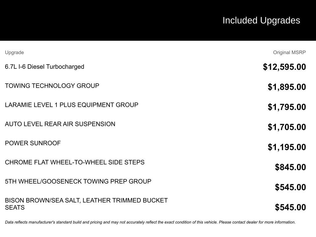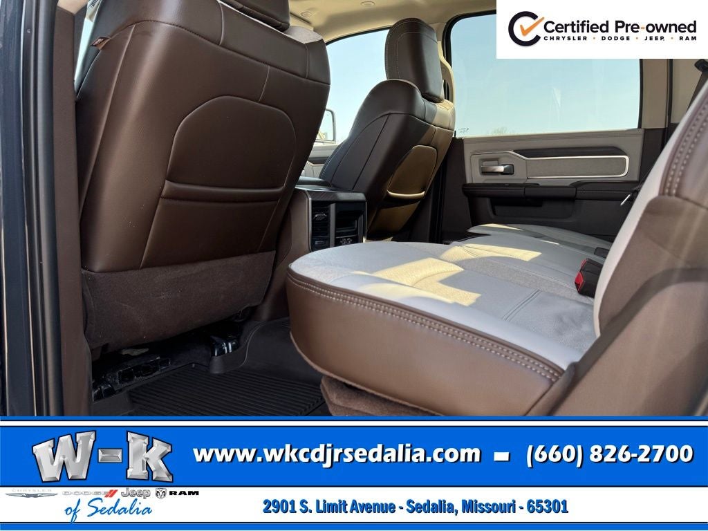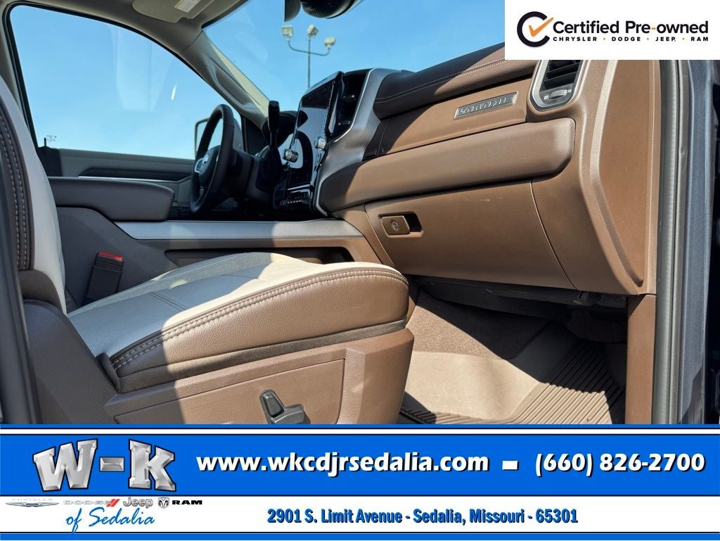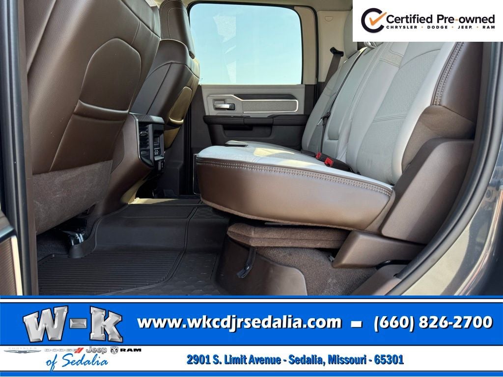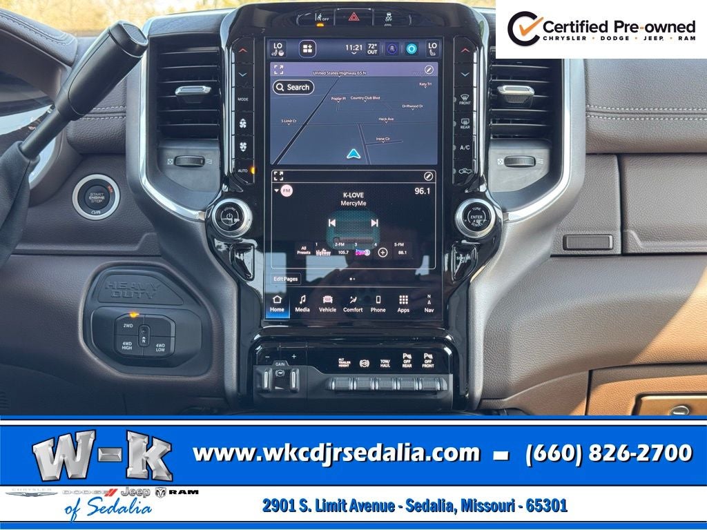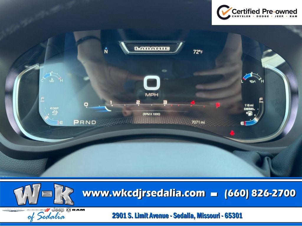 Certified Pre-Owned Gold Certified, #1 Seat Foam Cushion, 115V Auxiliary Rear Power Outlet, 2 Way Rear Headrest Seat, 2nd Row In Floor Storage Bins, 4 Way Front Headrests, Active Lane Management System, Adaptive Steering System, Auto Adjust In Reverse Exterior Mirrors, Auto Dimming Exterior Passenger Mirror, Auto High Beam Headlamp Control, Auto Power-Folding Mirrors, Auto-Dimming Exterior Mirrors, Bucket Seats, Chrome Exterior Mirrors, CTR Stop Lamp w/Cargo View Camera, Drowsy Driver Detection, Dual Wireless Charging Pad, Exterior Mirrors Courtesy Lamps, Exterior Mirrors w/Heating Element, Exterior Mirrors w/Memory, Exterior Mirrors w/Supplemental Signals, Foam Bottle Insert (Door Trim Panel), Folding Flat Load Floor Storage, Forward & Reverse Utility Lights, Front Seat Back Map Pockets, Full Length Upgraded Floor Console, GPS Navigation, Heated Front Seats, Heated Steering Wheel, High Back Seats, Laramie Level 1 Plus Equipment Group, Leather Trimmed Bucket Seats, LED Bed Lighting, Mirror Running Lights, MOPAR Deployable Bed Step, MOPAR Spray In Bedliner, Navigation System, ParkView Rear Back-Up Camera, Power 2-Way Driver Lumbar Adjust, Power 2-Way Passenger Lumbar Adjust, Power Adjust 8-Way Driver Seat, Power Adjust 8-Way Front Passenger Seat, Power Adjust Mirrors, Power Adjustable Pedals w/Memory, Power Heat Fold Memory Telescopic Mirrors, Power Sunroof, Power Telescoping Mirrors, Power-Adjustable Convex Aux Mirrors, Quick Order Package 24H Laramie, Radio: Uconnect 5 Nav w/12.0 Display, Rain Sensitive Windshield Wipers, Rear 60/40 Folding Seat, Rear window defroster, Remote Tailgate Release, Surround View Camera System, Towing Technology Group, Traffic Sign Recognition, Trailer Reverse Guidance, Trailer Tire Pressure Monitoring System, 10 Speakers, 4-Wheel Disc Brakes, 4G LTE Wi-Fi Hot Spot, 5th Wheel/Gooseneck Towing Prep Group, ABS brakes, Air Conditioning, Alexa Built-In, Alloy wheels, AM/FM radio: SiriusXM with 360L, Apple CarPlay, Apple CarPlay/Android Auto, Auto Level Rear Air Suspension, Auto-dimming Rear-View mirror, Automatic temperature control, Black Wheel Center Hub, Brake assist, Bumpers: body-color, Chrome Flat Wheel-to-Wheel Side Steps, Compass, Connected Travel & Traffic Services, Connectivity - US/Canada, Delay-off headlights, Delete Deployable Bed Step, Disassociated Touchscreen Display, Driver door bin, Driver vanity mirror, Dual front impact airbags, Dual front side impact airbags, Electronic Stability Control, Emergency Vehicle Alert System (EVAS), Front anti-roll bar, Front Center Armrest w/Storage, Front dual zone A/C, Front fog lights, Front License Plate Bracket, Front reading lights, Fully automatic headlights, Garage door transmitter, Global Telematics Box Module (TBM), Google Android Auto,